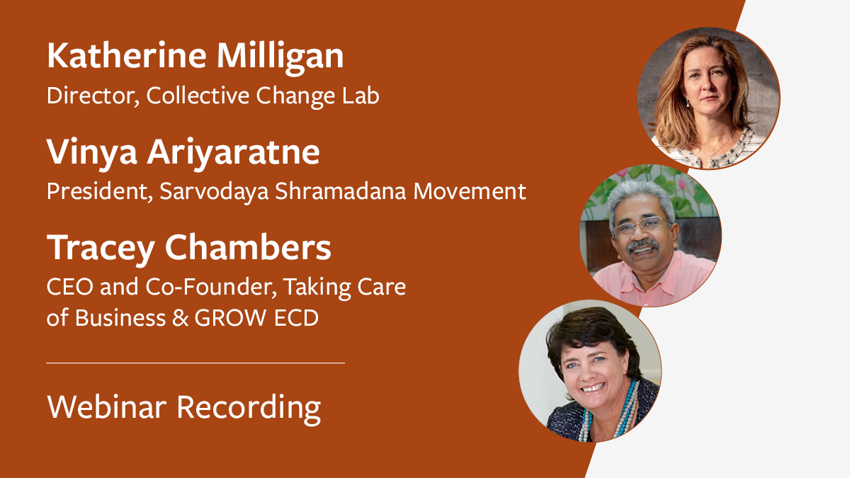 Katherine Milligan (Director at the Collective Change Lab and previous Executive Director of the Schwab Foundation for Social Entrepreneurship) speaks to Dr. Vinya Ariyaratne (President of the Sarvodaya Shramadana Movement) and Tracey Chambers (Founder and CEO of Taking Care of Business and GROW Educare Centres) as they share their experiences and explore ideas in this vital discussion.